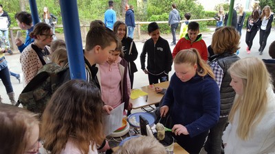 Obwohl der Earth Day in diesem Jahr auf rein freiwilliger Basis veranstaltet wurde, beteiligten sich erneut zahlreiche Klassen mit originellen Projekten zu verschiedenen Ernährungs- und Umweltthemen wie etwa einer Kräuterwanderung, alternativen Salatpflanzungen, einer Müllkunstausstellung, der Papierherstellung und einer globalen Webkampagne. Auch im gastronomischen Bereich wurde einiges geboten. Angefangen von veganen Waffeln über Bio-Muffins und Kuchen bis hin zu Colakraut-Quarkbroten und Bio-Smoothies war auch für das leibliche Wohl gesorgt. Earth Day3Und wie im letzten Jahr kam auch der gute Zweck nicht zu kurz. 85 Bäume werden mit dem diesjährigen Erlös durch das Canopy Project des Earth Day Networks neu gepflanzt. Über diesen Erfolg freuen wir uns besonders und bedanken und bei all unseren Unterstützern.